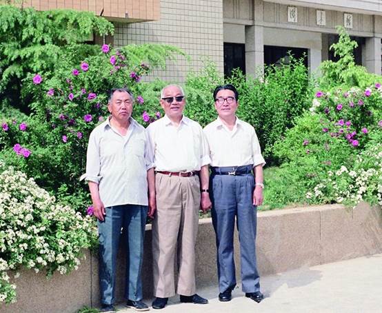 1989 年5 月,石油工业部原副部长黄凯 (中)来校视察,康斌(左)、乔聚星(右)陪同