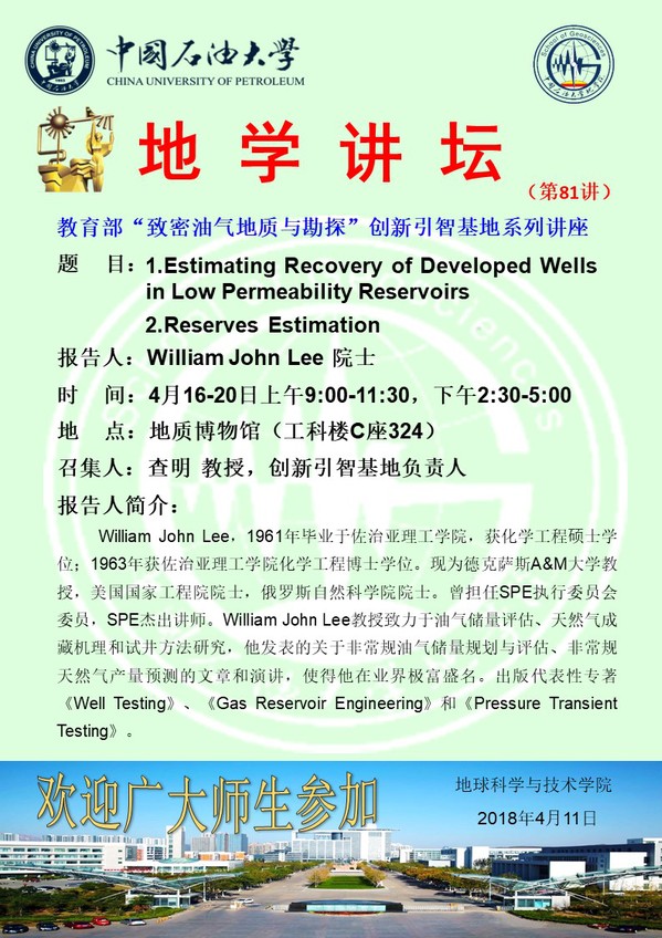 【地学讲坛第81讲】关于William John Lee 院士系列学术讲座的通知