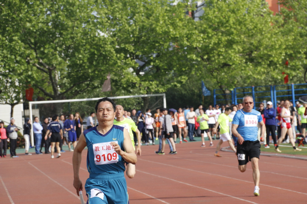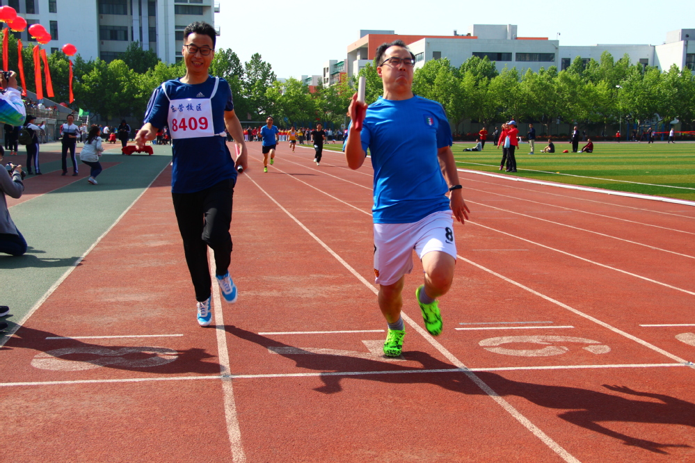 由王斌、马存飞、远二辉、玉素甫江.艾买提四位老师完成的男丙4*400米,拿下冠军,创造了奇迹,确保了团体总分第一!这是一次伟大的接力赛:远二辉超了3、4个对手,玉素甫江.艾买提曾在弯道被理学院超越,冲刺阶段又反超回来,真是好样的!