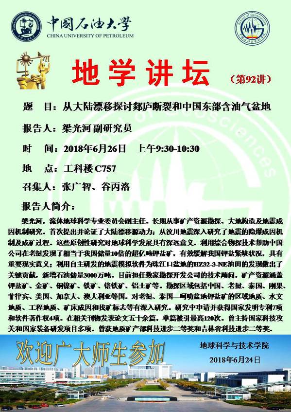 【地学讲坛第92讲】关于梁光河副研究员的学术报告通知