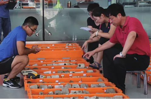 林承焰教授带领学生在油田查看岩心