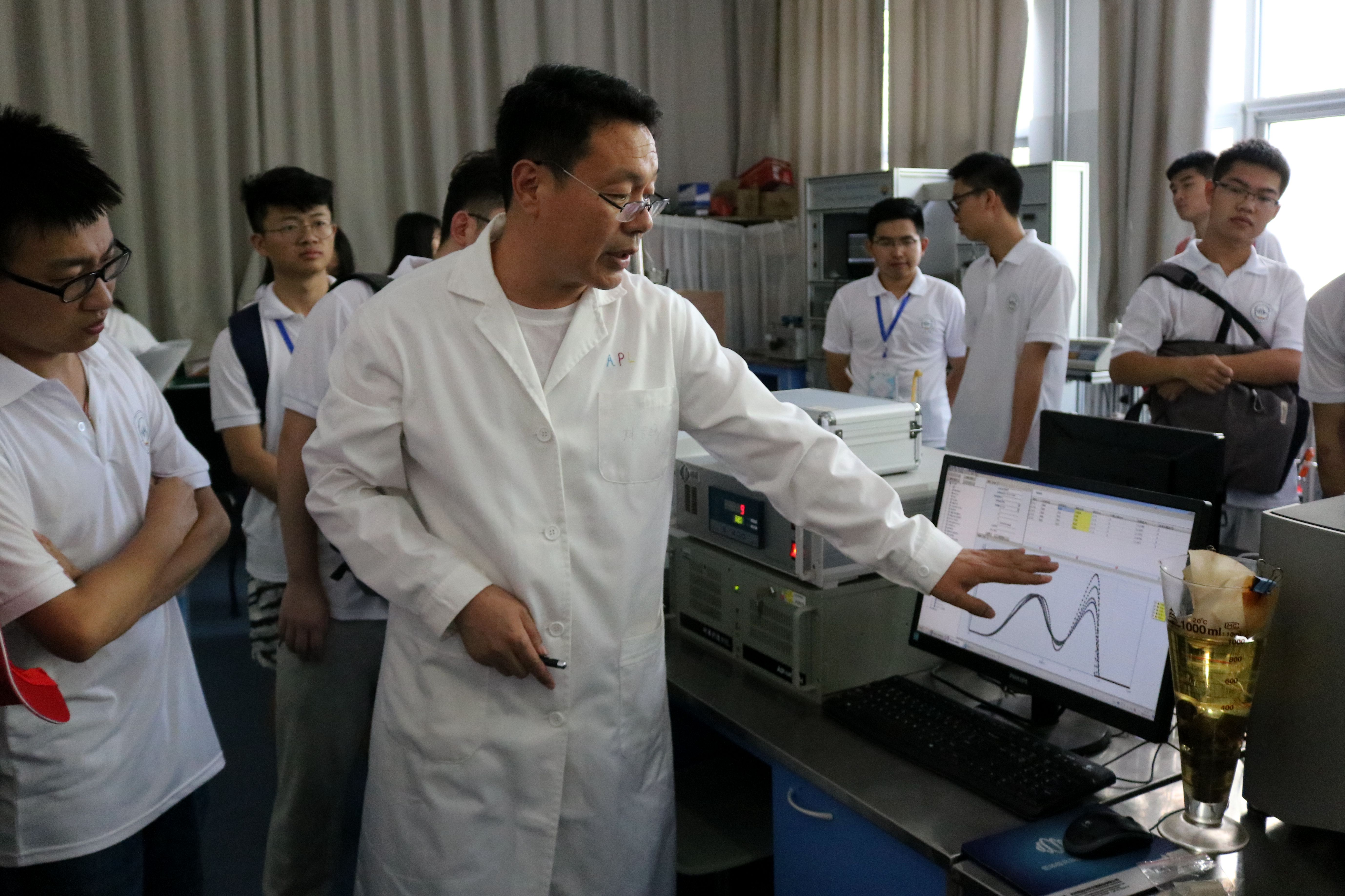 老师向营员介绍实验设备 摄影:李岳