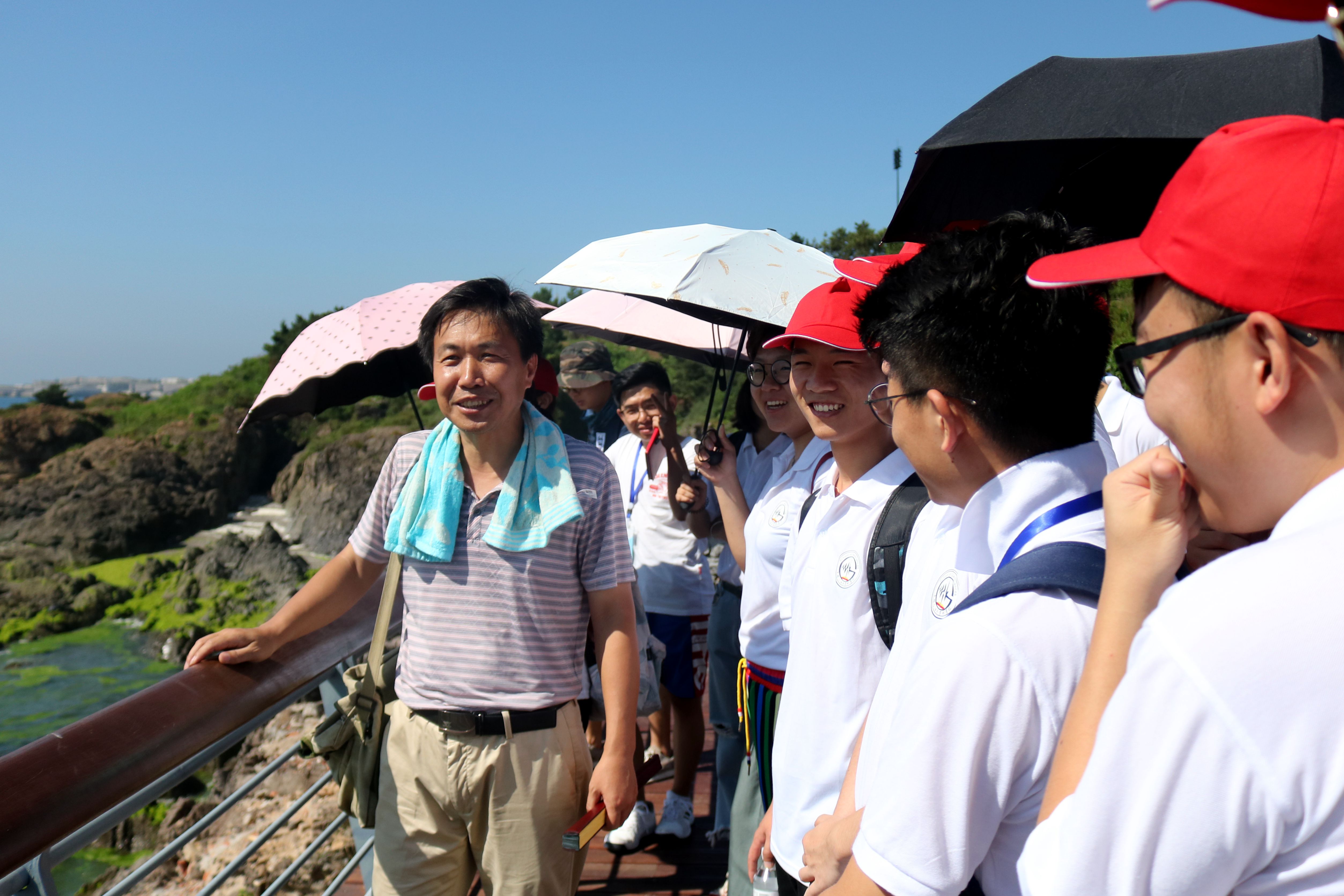 22日,营员参加了青岛西海岸地质考察。本次地质考察在西海岸新区的金沙滩开展,由地学院王冠民老师、鄢继华老师和辅导员杨建敏带队。在海天一色的壮丽景观下,老师为营员讲解现代地质沉积的相关知识,营员们与大海零距离接触,实际考察青岛海洋文化。来自西南石油大学的徐烁不禁感慨:“还是第一次在这么怡人的地方进行地质实习,很期待在青岛开展研究生生活!”随后,老师又带领营员到达小珠山地质考察点,让营员们从整体上观察了风化的地质全貌。营员们都表示很有收获,不仅增长了知识,而且还欣赏了美丽的风景。