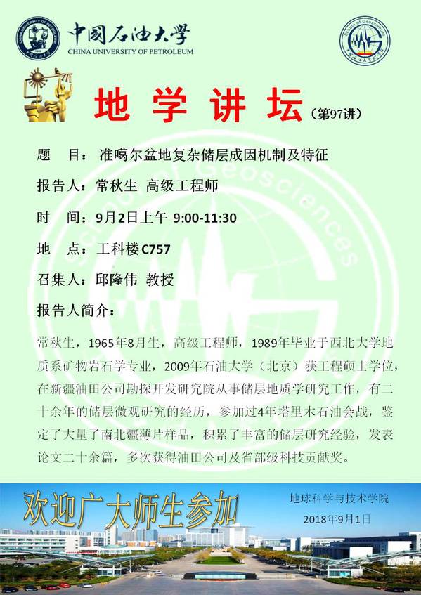 【地学讲坛第97讲】关于常秋生高级工程师的学术报告通知