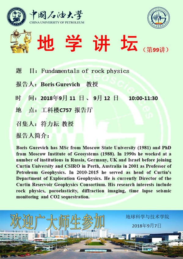 【地学讲坛第99讲】关于Boris Gurevich 教授学术报告1的通知