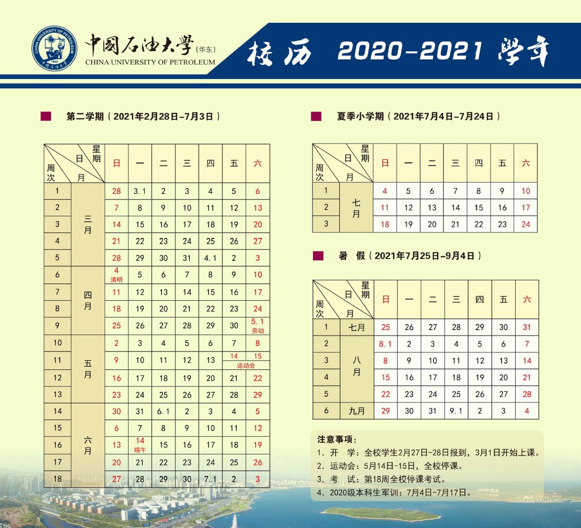 beat365唯一官方网站2020-2021学年校历