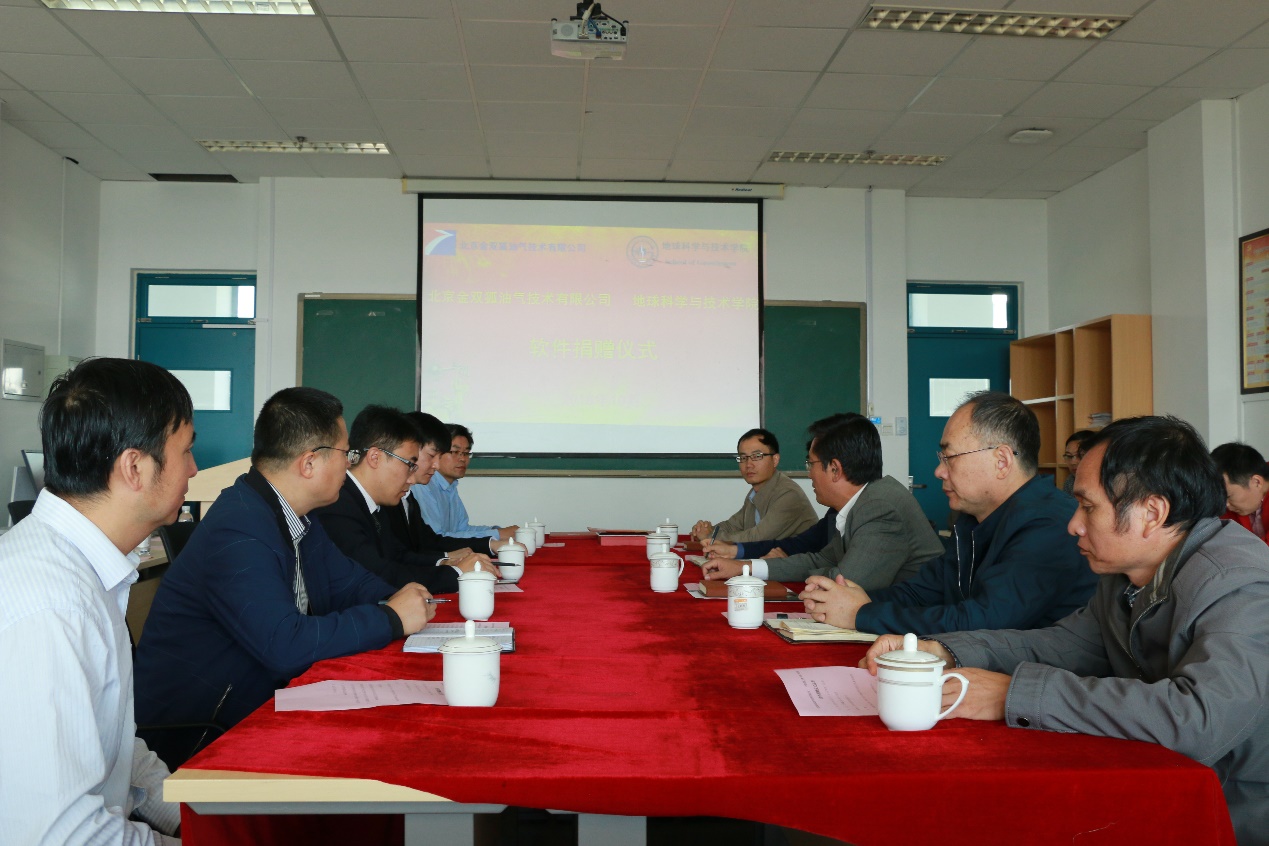 【本站讯】10月11日上午,beat365唯一官方网站“北京金双狐油气技术有限公司双狐软件捐赠仪式”在工科楼C座367会议室举行。北京金双狐油气技术有限公司总经理周国强、学校合作发展处副处长张炜、学院党委书记张卫东、副院长裴仰文,资源系教师代表出席捐赠仪式。