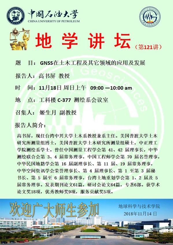 【地学讲坛第121讲】关于高书屏教授的学术报告通知