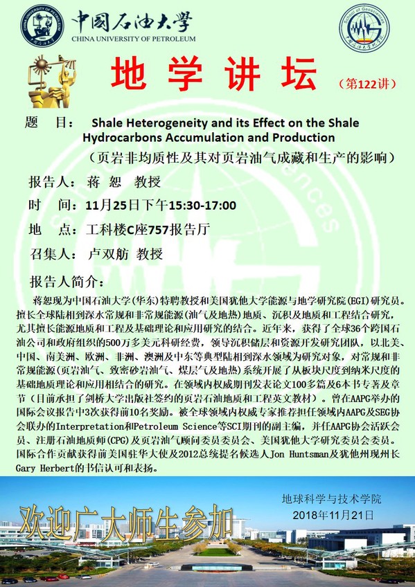 【地学讲坛第122讲】关于蒋恕教授的学术报告通知
