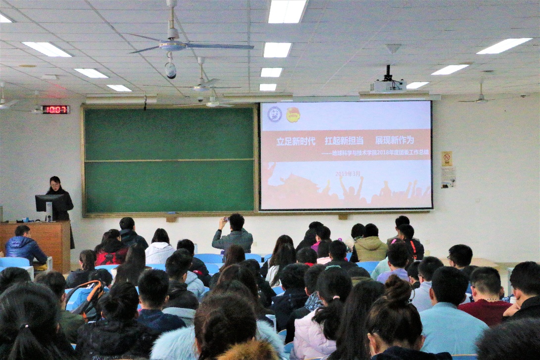 团委书记霍宁宁传达学校《共青团2019年工作要点》并做总结讲话,2019年地学院共青团的主要工作,一是聚焦主责主业,强化大学生的思想引领,进一步发挥学院“大地经纬”育人平台的作用;二是抓好队伍,树立典型,做实从严治治团。发挥学科优势,多角度挖掘个人和集体典型,做好五四表彰工作;三是整合资源,搭建平台,助力第二课堂育人效果。成立第二课堂工作室,结合学院特色为学生提供更多自主选择的“产品”。