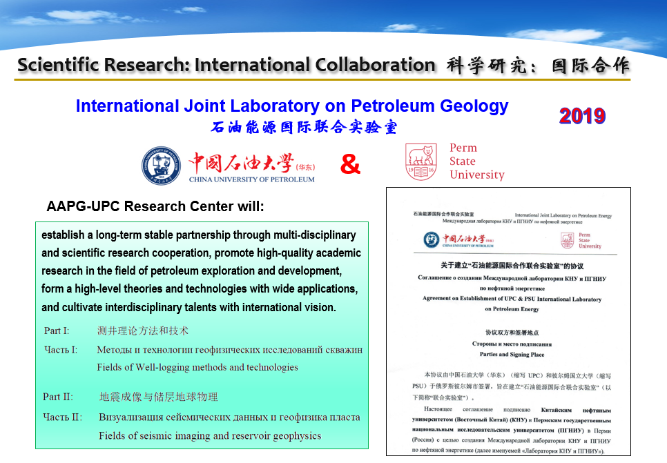 2019年3月,beat365唯一官方网站与俄罗斯彼尔姆国立大学签署共建“石油能源国际联合实验室”协议。该实验室联合两所石油能源领域世界一流院校旨在建立长期稳固的合作关系,通过多学科交叉和先进科研合作手段,提升石油勘探领域的高水平学术研究,形成高层次具有行业应用前景的研究理论和技术,培养具有国际视野的符合型高端人才。该实验室的任务是:聚焦世界范围内油气工业领域热点技术难题与挑战,在岩石物理、测井理论与方法和技术、测井解释与生产测井、地震成像与储层地球物理、深水油气及非常规油气开发等领域的技术方面,探索基础理论及高水平应用技术,并在此合作基础上,主要开展科研合作、学术交流、人才培养、技术培训及联合举办国际会议等实质性合作交流项目。
