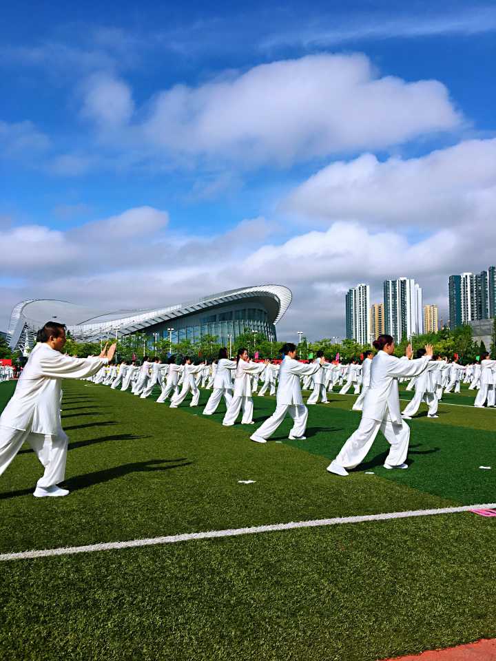 我院老师在太极拳表演,动作整齐优美,为群体活动增加了亮色,也确保了道德风尚奖的获得(沈一新老师照)!要感谢没有上场的替补队员,有大家的功劳。