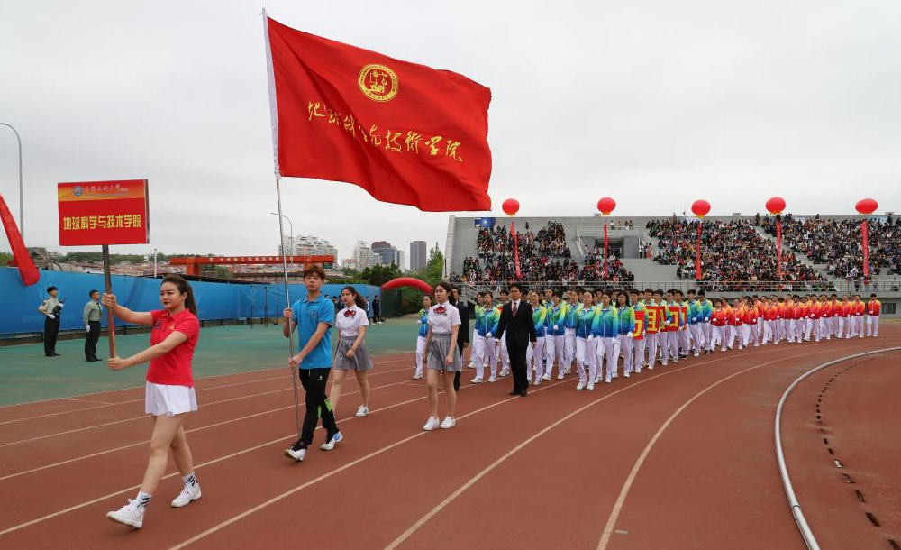 开幕式上我院师生参与的啦啦操、太极拳表演精神饱满,英姿飒爽。我院师生方阵朝气蓬勃,斗志昂扬,“脚踏实地、胸怀全球、地学尖兵、勇创一流”的口号声响彻云霄,向全校师生展示了一流学院勘探尖兵的风采。