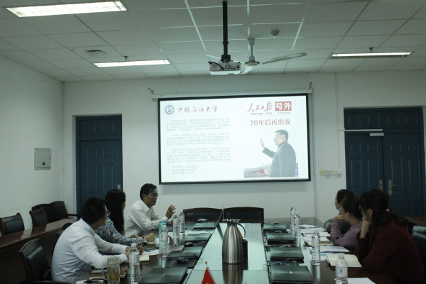 学院党委书记张卫东向大家分享参加国庆彩车游行的感受。张卫东书记从8月份接到通知时的意外和激动讲起,分享了几点感受:作为基层党务工作者参加这次游行,是至高无上的荣誉,非常自豪、非常珍贵;在游行过程中的所见所闻、所思所想、体味党恩国威,倍受教育、倍受鼓舞;结识英模、学习英模、看齐标杆榜样,是弥足珍贵的机会,很有收获、更有动力。同时也勉励支部成员既要有高尚情怀,又要有高超本领,争做卓越石大人。会后,支部成员纷纷表示,本次“不忘初心、牢记使命”组织生活对自己触动大、感受深,将继续保持干事创业的正能量,推动学院事业不断发展。