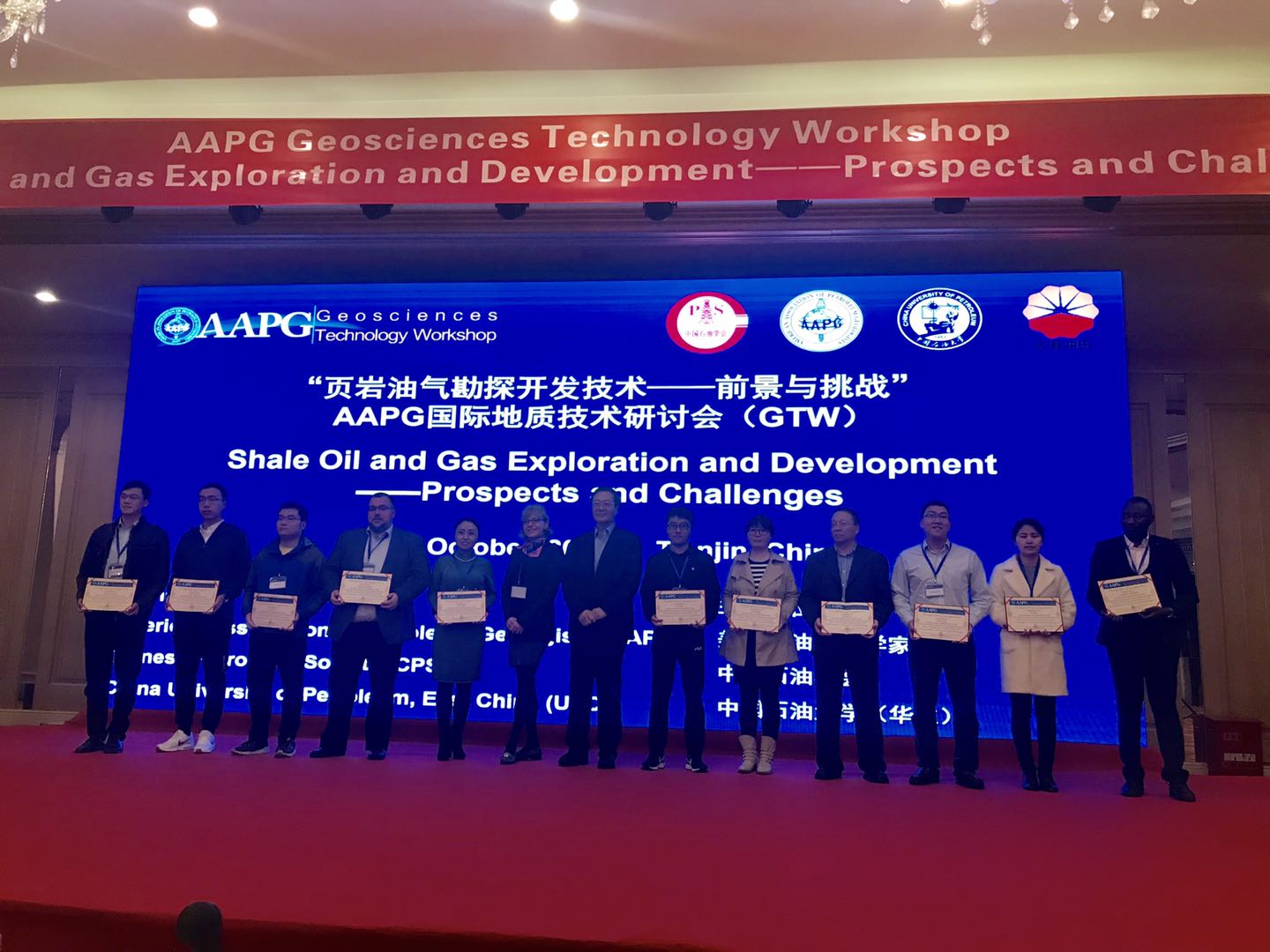 来自中国、美国、加拿大、德国等国家的各大石油公司、科研院所和高校的近250位专家学者参加了此次会议,会议得到海内外专家学者的一致好评。同时,大会学术委员会对参会的32个展板进行了评选,共评出11个优秀展板,并由Susan Nash和贾承造院士为优秀展板获得者颁发了获奖证书。