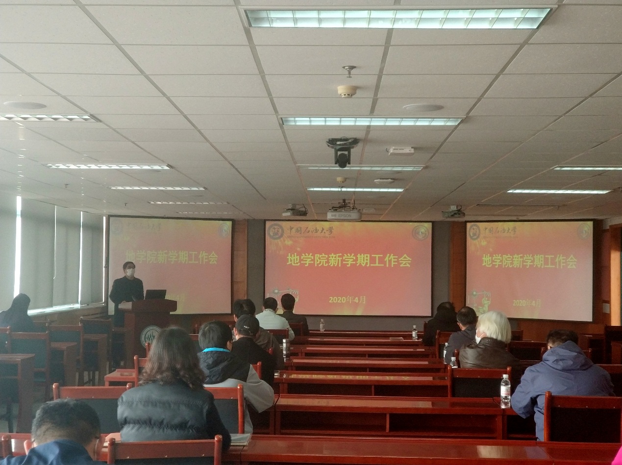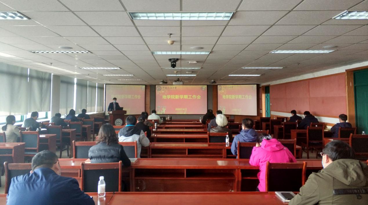 全体与会人员收看了学校新学期工作会议的直播,校长郝芳发表了题为《做值得尊敬的职工、办值得尊敬的大学》的讲话,对学校2019年工作进行总结,对2020年工作进行部署,对干部、职工担当作为提出要求。党委书记王勇主持会议并发表题为《重点攻坚抓落实、群策群力谋发展》的讲话,对全力确保“十三五”圆满收官、科学谋划“十四五”发展蓝图、全面推动学校工作实现新发展进行了强调部署。围绕学校新学期工作要点,地学院对于贯彻落实做出部署。