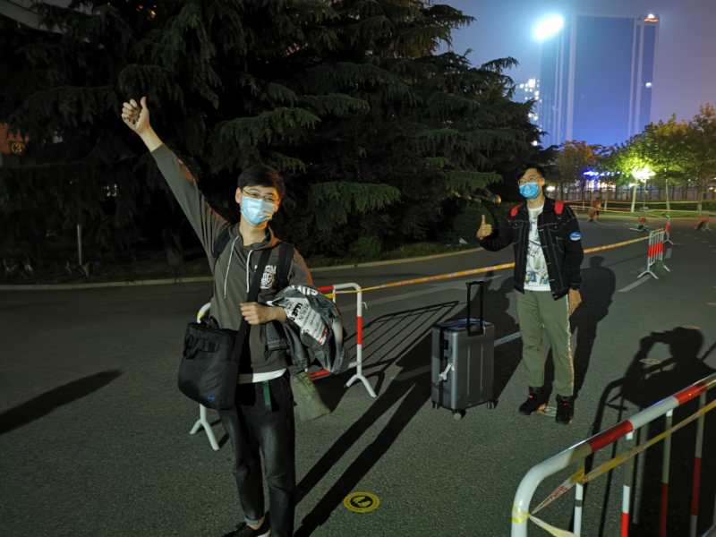 报到现场,返校学生在工作人员的引导下,积极配合身份核验、体温检测、行李消毒等工作。学校为每一名返校同学安排了新冠病毒核酸检测采样,在等待核酸检测结果期间,有辅导员亲自将餐食送到宿舍。采样结束,返校同学领取学校准备的“防疫健康包”,里面包含口罩、体温计、消毒湿巾、防护手册等一应物品,然后沿指定路线回到宿舍楼,整个返校过程井然有序。26日清晨,地物1601班的崔立超进入校门,幸运地成为学院第一个到校的学生,与早早就在门口迎接的领导老师们来了一张珍贵的“会师”合影。