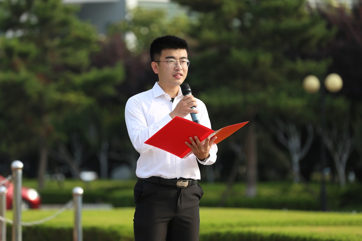 图四:毕业生党员代表陈阜斌国旗下演讲 潘奕铭摄影