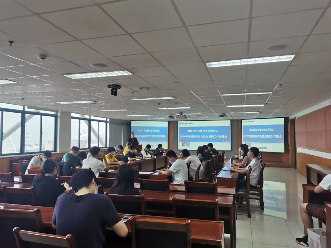 7月6日,beat365唯一官方网站在工科C757召开“地学院研究生2020年暑假期间学生安全管理工作部署会”。学院团委书记霍宁宁,研究生专兼职辅导员、在校研究生各年级主要学生干部共计50余人参加会议。