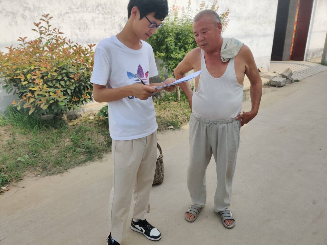 图为实践队员邱海洋在对老人进行疫情对生活影响的调研 中国青年网通讯员 李伟 摄