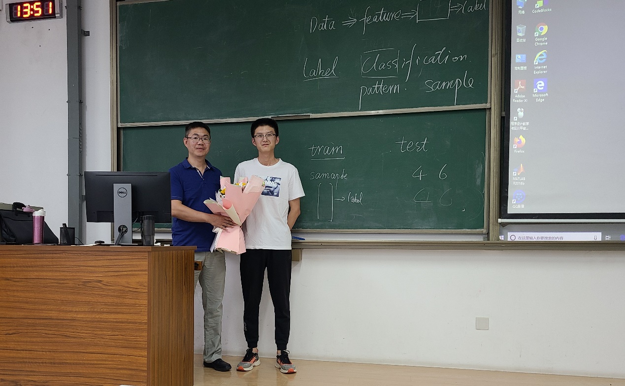 学生为上课教师送花
