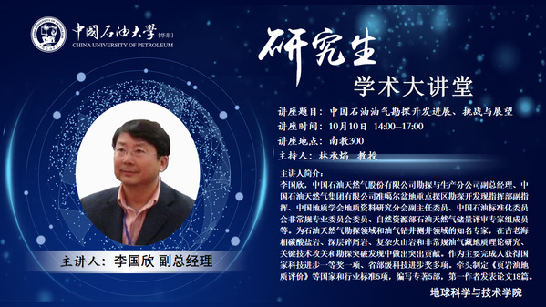 研究生学术大讲堂地学院第九期--李国欣 副总经理《中国石油油气勘探开发进展、挑战与展望》