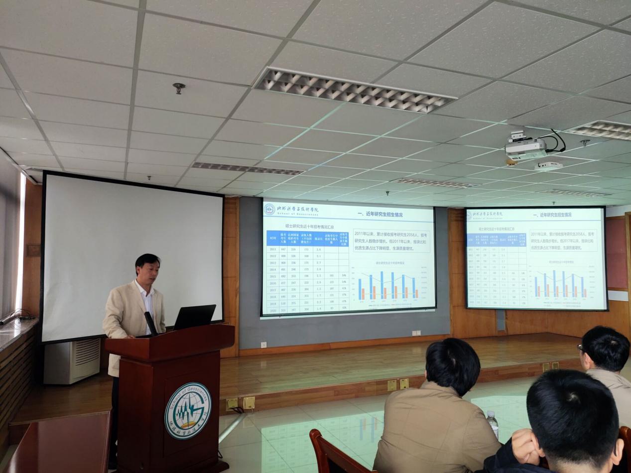 座谈会上,邓少贵副院长首先就学院近年研究生招生情况向各位新晋导师进行了通报,指出学院研究生培养面临优质生源不足、研究生培养质量需要提高的双重问题,新晋研究生导师务必积极参与研究生招生宣传和从严指导研究生,切实提高研究生培养质量。