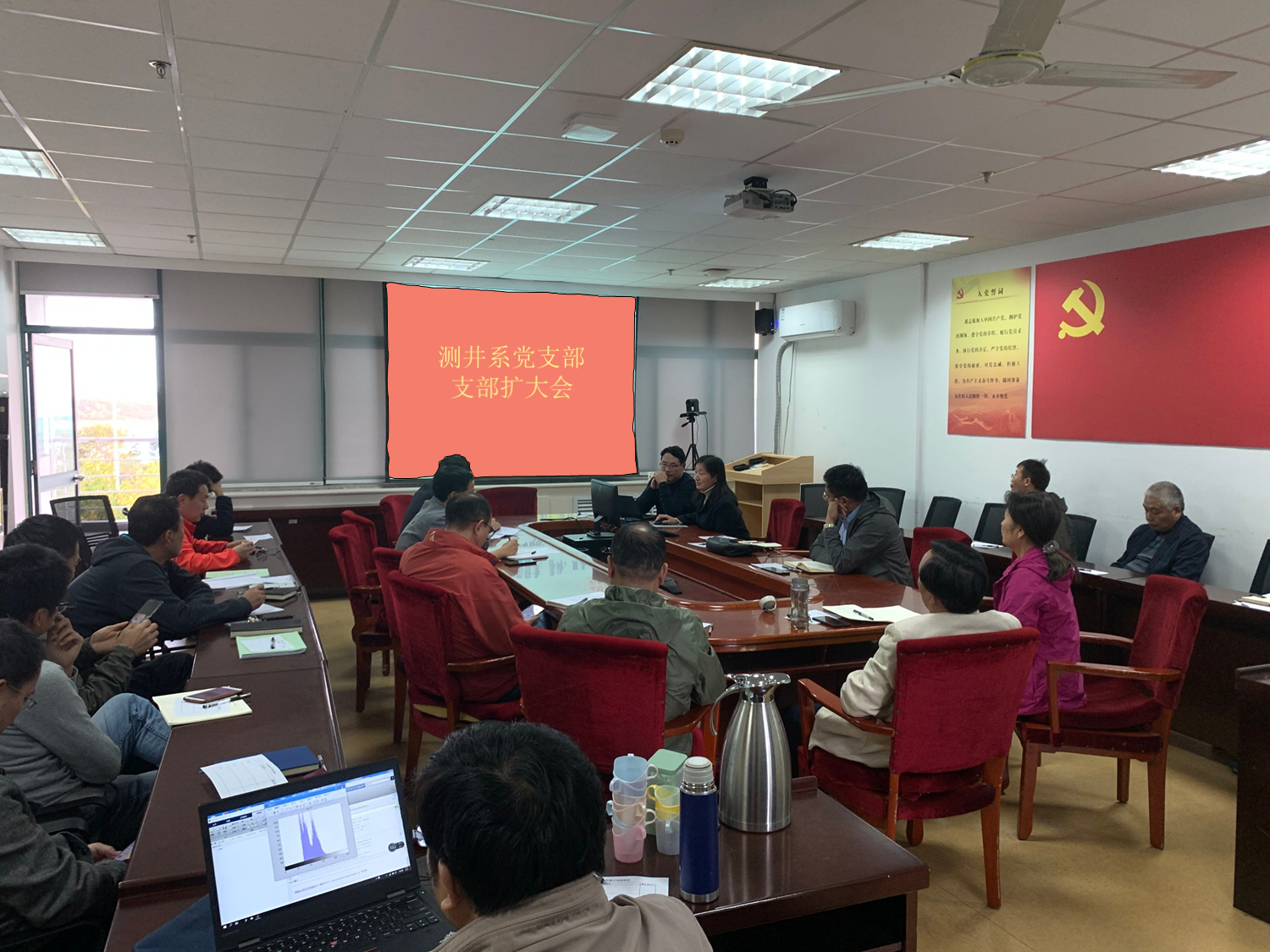 10月22日下午测井系党支部开展党支部工作规范的专题学习会。测井系全体党员参加学习活动,党支部书记谭宝海同志主持了本次学习会。