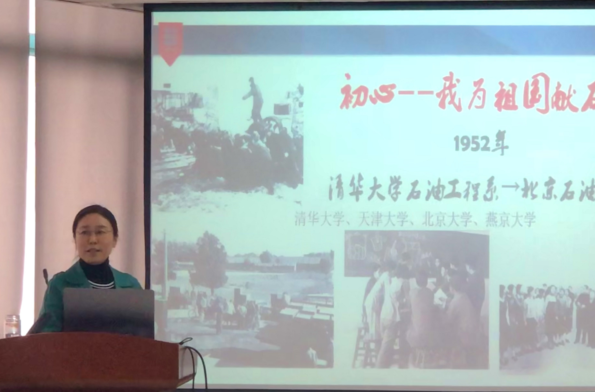 地学院党委书记刘华以《勘探尖兵的时代使命》为题的主题党课,将活动推向高潮。她从因油而生、肩负重任,因油而生、引领发展,因油而强、高速发展等三个方面深入全面地回顾了学校及学院历史以及新时期学院跨越发展的历程。“地质资源与地质工程第四轮学科评估A+学科;‘资源工程’学科领域全国首个国家自然科学基金创新研究群体;首批全国高校黄大年式教师团队;2018年研究经费突破两亿…”当讲到学院在一流学科建设过程中,大平台、大团队、大项目等方面的突出成果时,在场师生为之振奋,响起热烈掌声。“每一位同学从选择石大的那一刻起,就接过了前辈们的接力棒,就选择了服务国家能源战略的责任担当。”她强调,不同时代的青年有不同的历史使命,这一代勘探尖兵就是要立足油气勘探等领域,担起实现中华民族伟大复兴的历史使命。