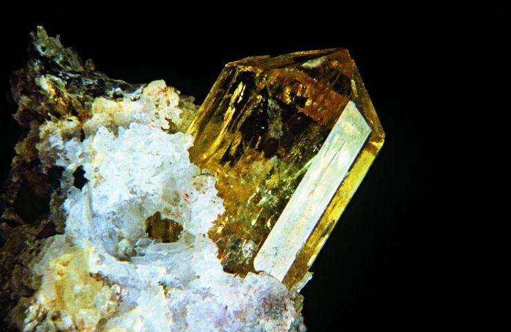 物理性质:颜色有多种, 以黄色、绿色、黄绿色、褐色等为常见;玻璃光泽,断口呈油脂 光泽。硬度5;解理平行{0001}不完全;具参差状或贝壳状断口。密度2.9-3.2g/cm3。