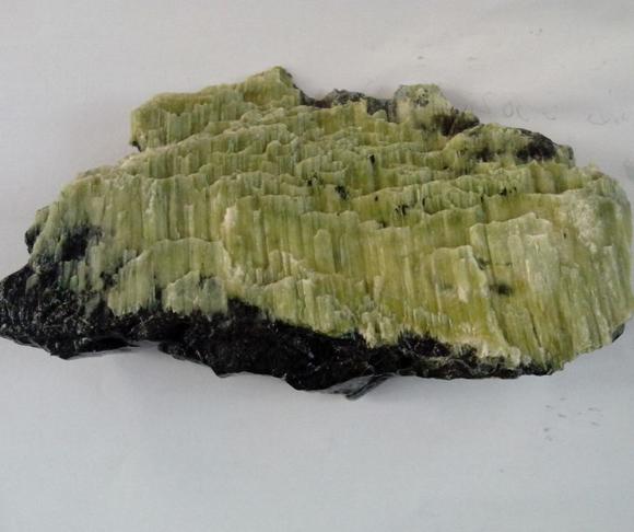 [鉴定特征]根据其颜色、光泽、较小的硬度、纤维状或块状形态及产状加以识别。蛇纹石矿物之间的区别较困难,只有通过扫描电镜、X射线法、热分析、光性鉴定来进一步精确确定。