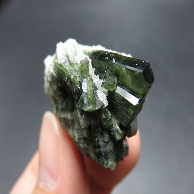 [物理性质]镁橄榄石为白色、淡黄色或淡绿色,随成分中Fe2+含量的增高,颜色加深而成深黄色至墨绿色或黑色,一般的橄榄石为橄榄绿色;玻璃光泽;透明至半透明。解理{010}中等;常见贝壳状断口。硬度6.5-7。相对密度随Fe2+含量的增加而增高(3.27-4.37)。
