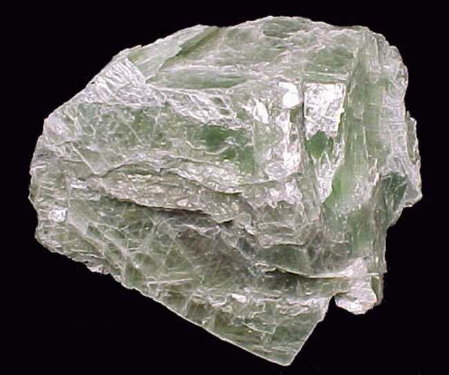 [物理性质]大多带绿色调,但随成分而变化,富Mg为浅蓝绿色,富Fe颜色加深,为深绿到黑绿,含Mn呈浅褐、橘红色,含Cr呈浅紫到玫瑰色;条痕无色;玻璃光泽,解理面呈珍珠光泽。解理{001}完全。硬度2-2.5,随着含铁量增加,硬度随之增大可达3。相对密度随成分中含铁量增加而增大,变化在2.68~3.40。解理片具挠性。