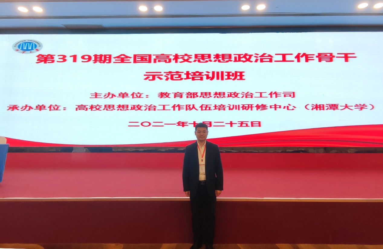 1024日至27日,我院辅导员任金恒赴湖南省湘潭市参加第319期全国高校思想政治工作骨干示范培训班,就“传承弘扬中国共产党精神谱系”进行了专题学习并顺利结业。