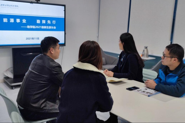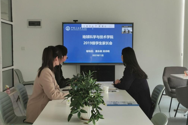 “孩子们在学校的课程压力大不大?”“孩子们在学校都能参加哪些课外活动?”“资源勘查工程专业学生未来的就业方向有哪些?”家长纷纷对着屏幕里的“主播”们提出问题。这是学院各年级线上家长会会议现场,辅导员一一为家长解答疑惑。