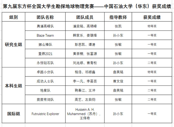 12月17日,第九届“东方杯”全国大学生勘探地球物理大赛暨第一届国际大学生勘探地球物理大赛落下帷幕。我院两支学生代表队分别获得国内赛道本科生组特等奖和研究生组特等奖。