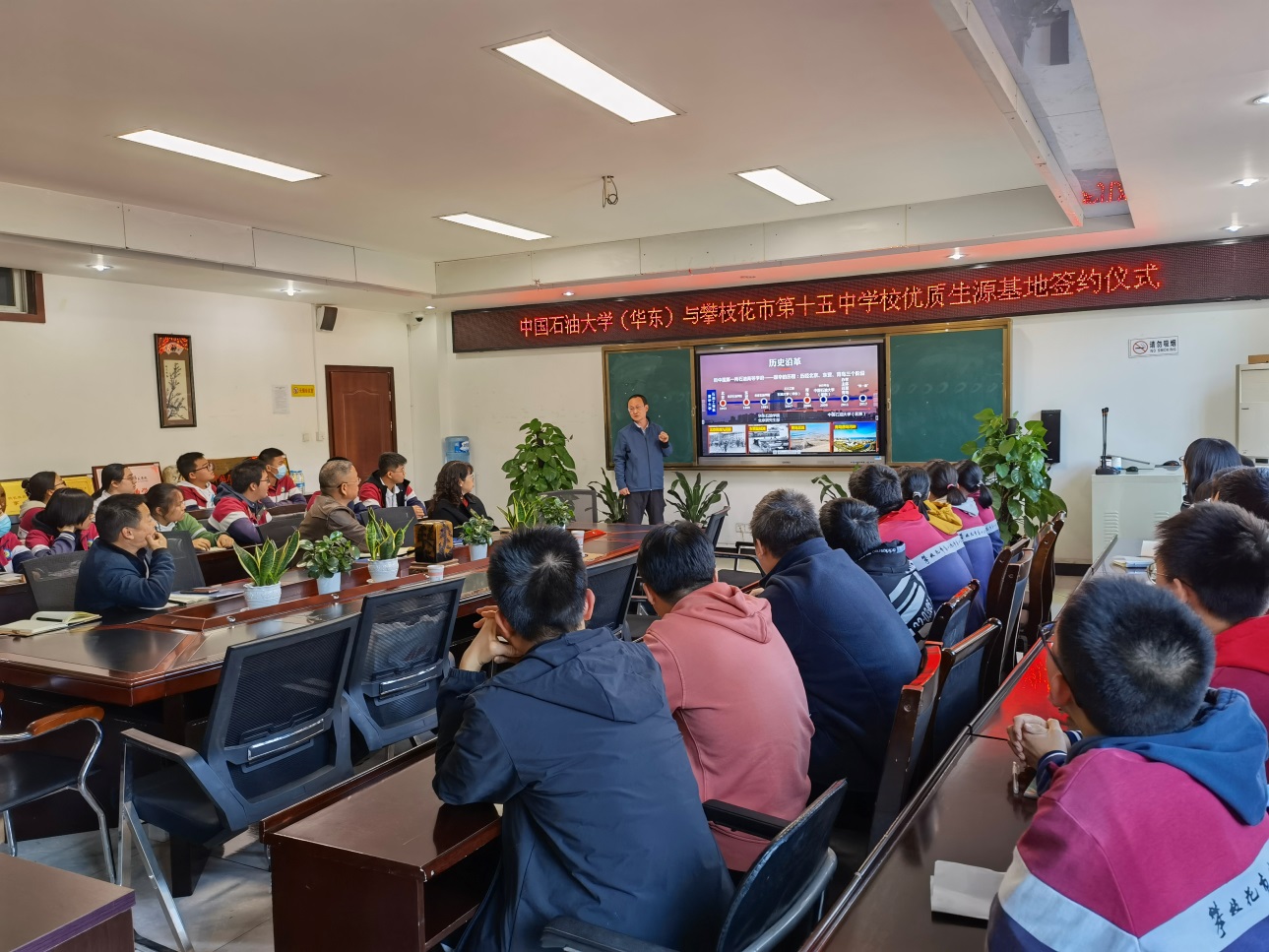 在攀枝花十五中学,龚安老师为成绩优秀的学生们作了《遇见石大,未来可期》的宣讲报告,让学生们多角度、全方位了解beat365唯一官方网站,激励学生认真学习,引领优秀学生加盟学校。