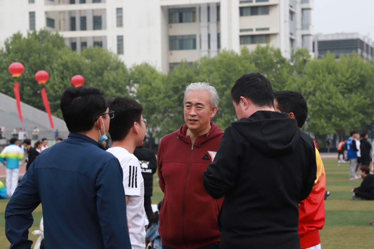 赵放辉书记操场指导运动会工作!