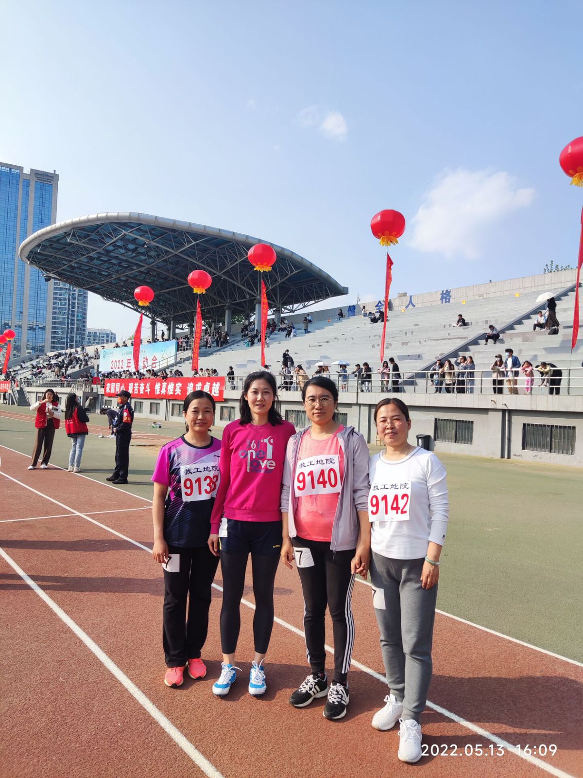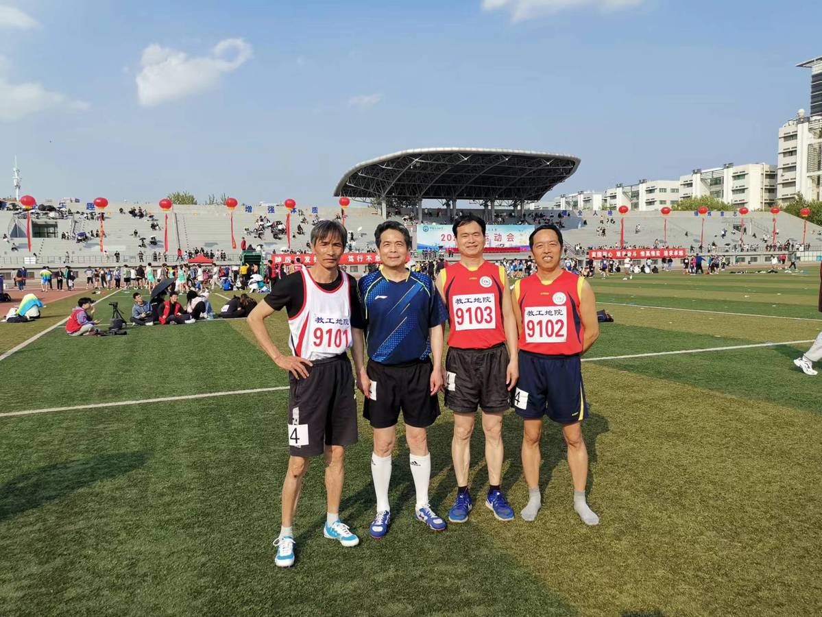 赛后校党委副书记、纪委书记吴强明,副校长周鹏、校工会主席王德钊与地院师生合影。运动会取得圆满收官,各位老师明年再见!