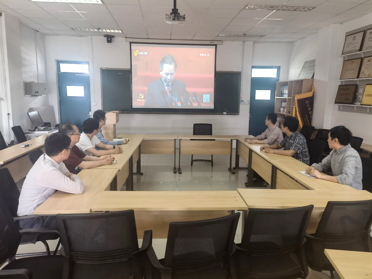 5月28日,资源系党支部在工科楼C367会议室组织集中收看中国共产党山东省第十二次代表大会开幕式实况。此次党代会在济南召开,为期5天,大会主题为“坚持以习近平新时代中国特色社会主义思想为指导,深入贯彻落实习近平总书记对山东工作的重要指示要求,牢记嘱托走向前,勇担使命开新局,为建设新时代社会主义现代化强省而努力奋斗”。李干杰同志代表中国共产党山东省第十一届委员会向大会作了报告。