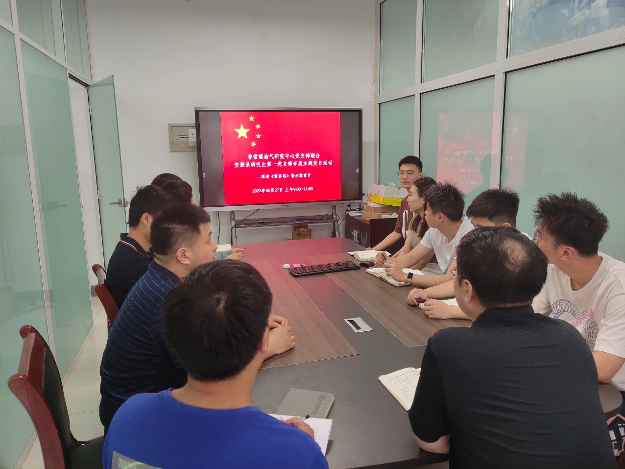 6月27日上午,非常规油气研究中心党支部联合资源系研究生第一党支部组织开展了“守纪法、强作风、促发展”主题党日活动,师生共同观看了《零容忍》警示教育片,并开展了沙龙讨论。