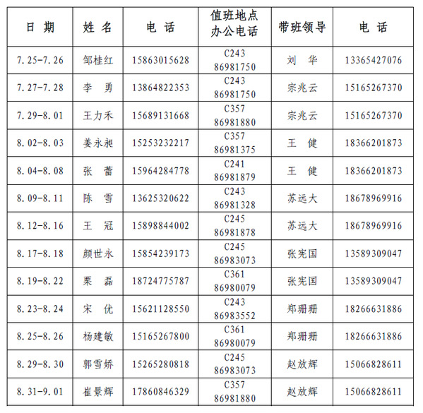 一、值班时间:8:30-11:30、14:30-17:30,周末休息。