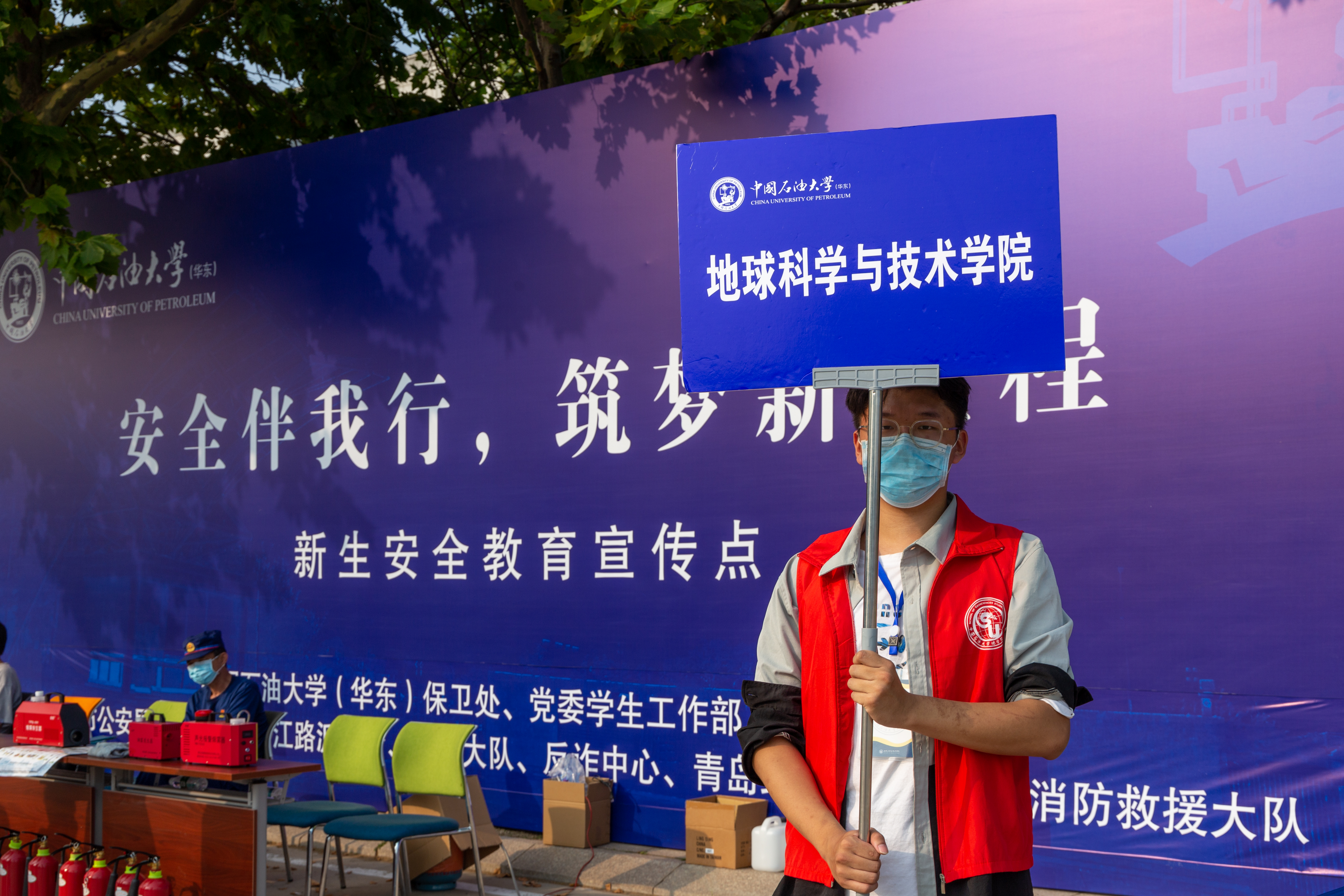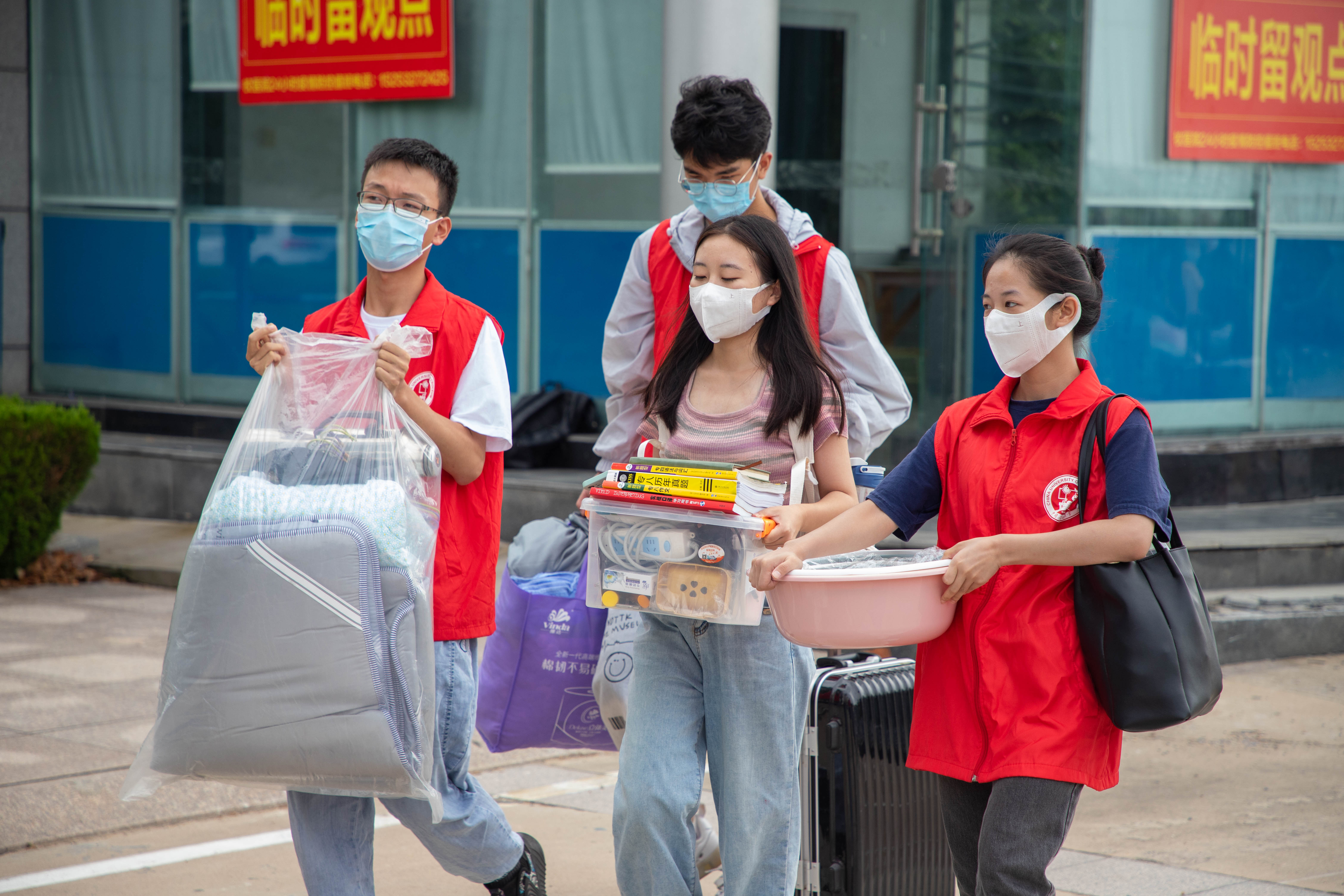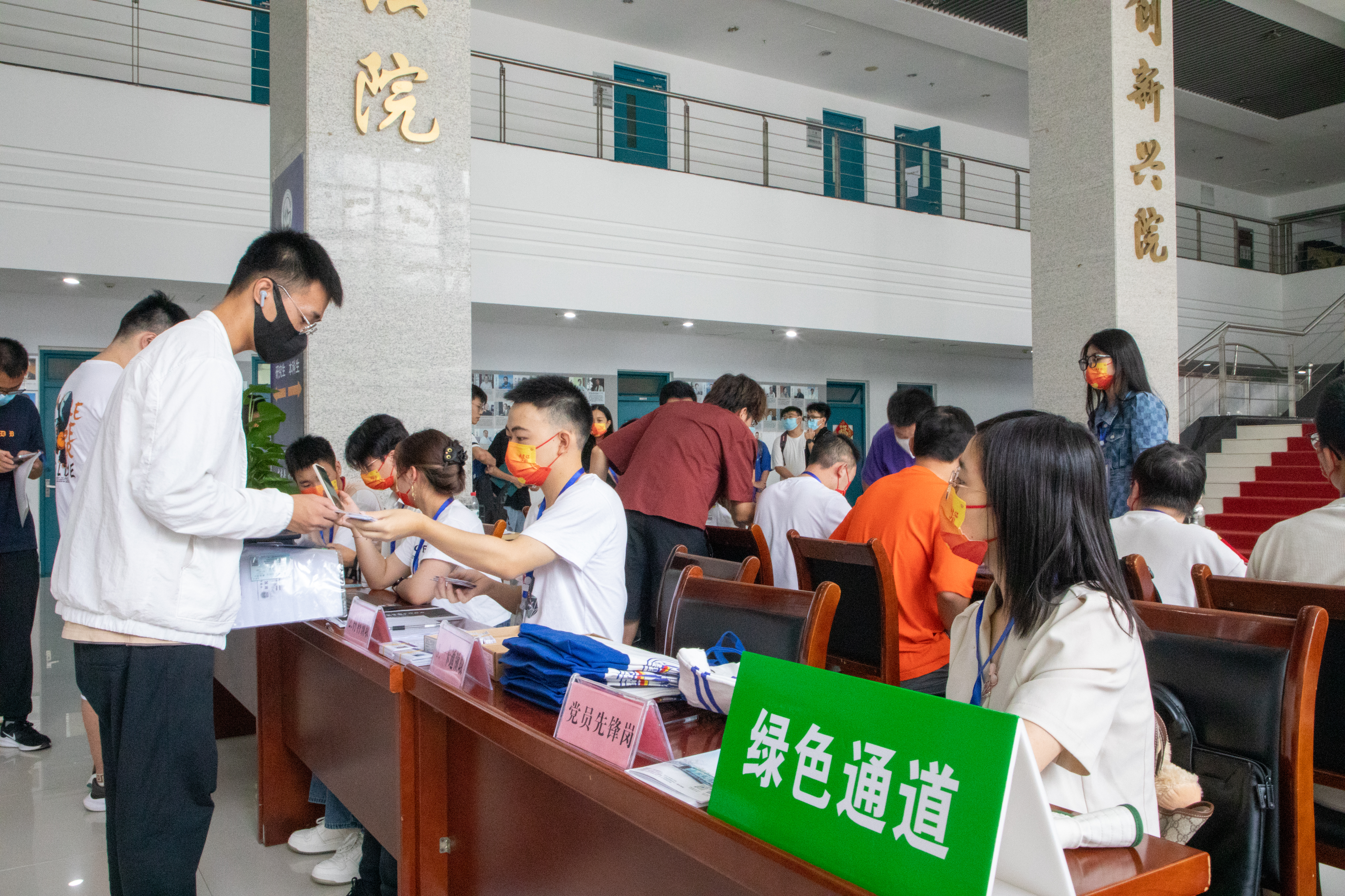在迎新过程中,由学院学生会、春晖志愿队、易班、地院传媒工作室、双创中心等学生组织成员组成的志愿者队伍主动担当,同样“亮眼”。在老师们的带领下,春晖志愿队负责在宿舍楼门口迎接新生,学院学生会负责引导服务,易班负责在报到点检查发放资料,还有一位位“红马甲”地院传媒小记者们为每一位新生留下大学的第一抹微笑……迎新工作在师生的共同努力下有条不紊,既让新生们有了家一般的温暖,同时保障了疫情防控期间迎新工作的高效、有序、安全。迎新结束后,地院传媒工作室刘旭文感慨道,“虽然很累,但能用相机记录下新同学们的初入大学的开心与激动,我觉得一切都很值得,我和他们一样幸福快乐。”
