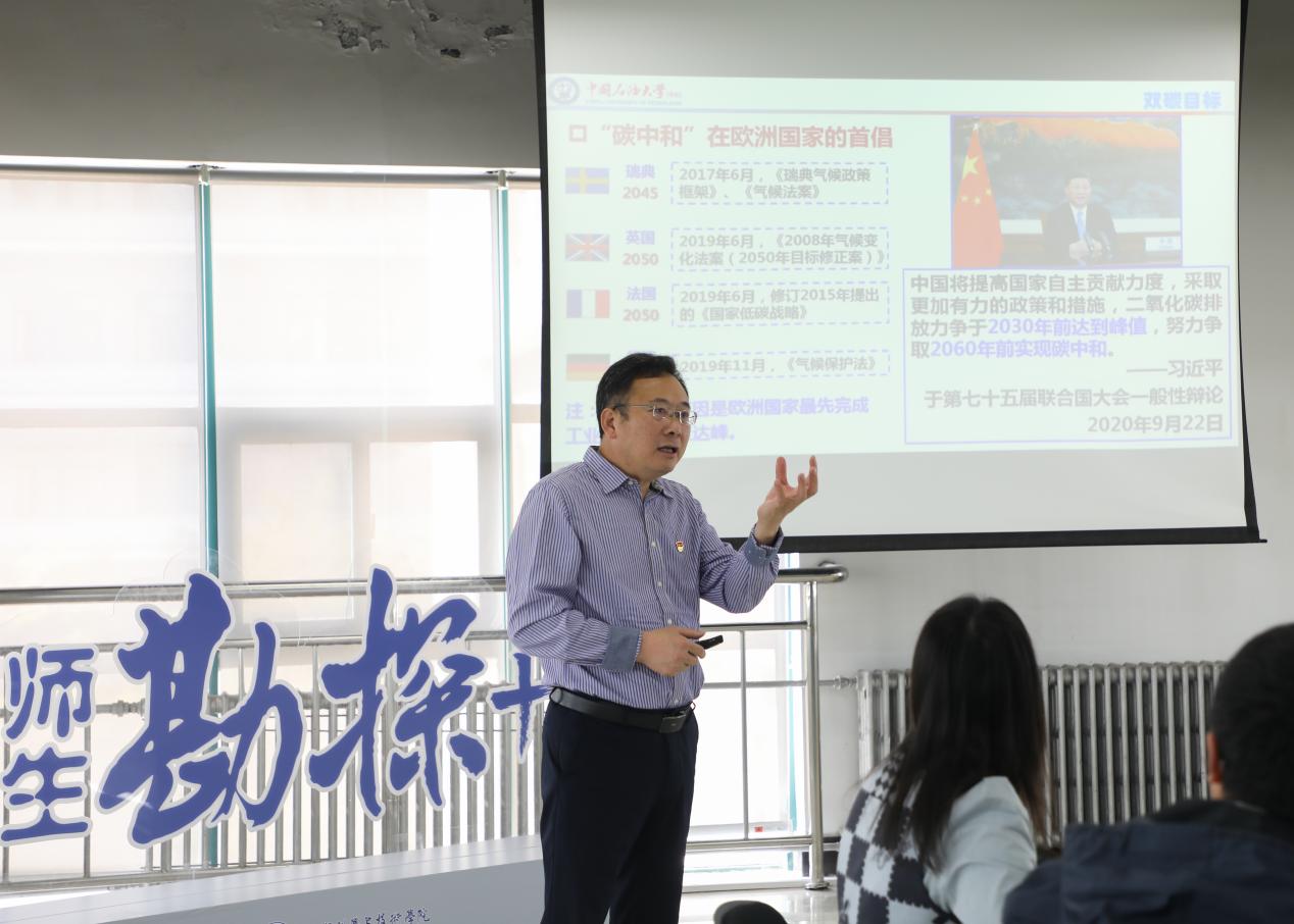 操应长从“双碳”目标的提出切入,为同学们梳理了四次工业革命能源消耗的演进过程。他认为,中国是世界上最大的能源消费国和进口国,高质量发展对油气需求仍将保持刚性增长,在新能源技术没有完全突破的情况下,我国目前能源安全的主要矛盾仍集中体现在油气安全问题上。
