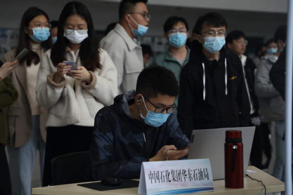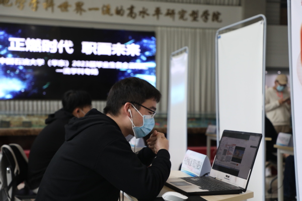 活动过程中,毕业生们积极投递简历,对话企业hr。来参与此次招聘会的测井专业毕业生裴培表示“受限于疫情的原因,今年的招聘大多数都采用线上的方式进行,这造成能够与企业面对面交流的机会非常少。此次举办的招聘会能够为同学们提供跟意向单位一对一答疑的机会,对我们即将就业的同学帮助非常大。通过此次活动,我针对我关心的问题与意向单位进行了一对一交流,单位的解答解决了我对于岗位需求及工作内容等困惑,能够更好的帮助我们准备后续的笔试及面试,也使我们可以在当前的就业环境中找到努力的方向”。