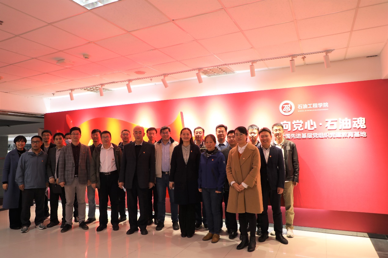 11月23日,为深入学习贯彻党的二十大精神,发挥榜样示范引领作用,学院党委组织教工党员走进“全国先进基层党组织”石油工程学院“向党心·石油魂”党建教育基地开展“学习先进典型,争做优秀党员”主题党日活动。学院党委书记赵放辉、党委副书记郑珊珊及各教工党支部党员代表参加活动,石油工程学院党委书记张展代表石油工程学院对赵放辉一行表示热烈欢迎。