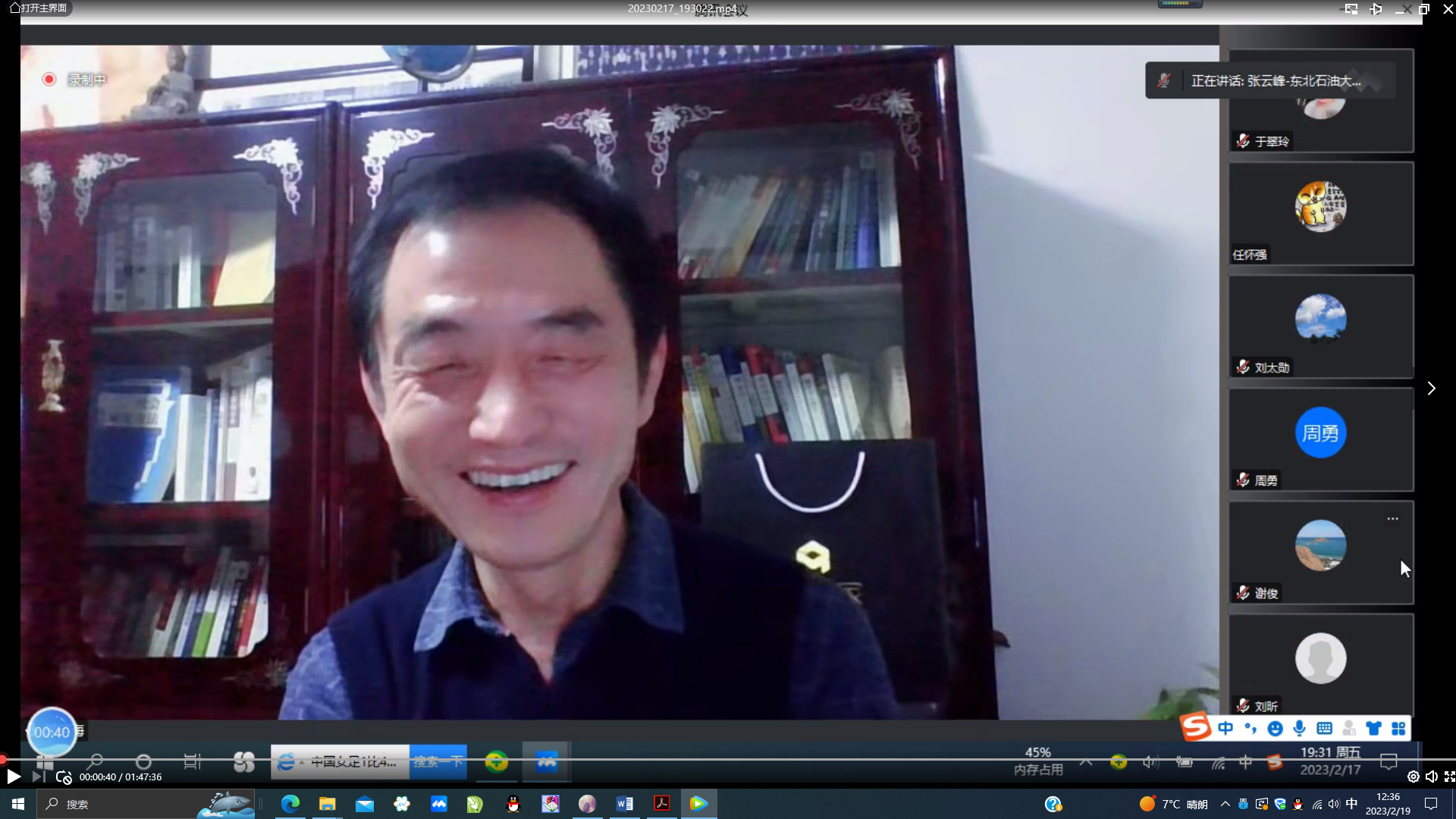 为完成课程思政示范课程数字化资源建设、加强审核把关、发掘和转化典型经验,2月17日,教育部地质学类教指委举办了“油田开发地质学”国家级课程思政示范课专家点评与交流会,也是教育部“油气田开发地质学”课程虚拟教研室的一次学习研讨会。地质学类教指委邀请了5位委员进行该课程建设资料的审核把关、会议点评与交流,本次邀请的专家包括:beat365唯一官方网站副校长操应长教授、中国矿业大学资源与地球科学学院郭英海教授、中国石油大学(北京)地球科学学院院长王贵文教授、吉林大学地球科学学院院长单玄龙教授和东北石油大学地球科学学院院长张云峰教授。我校油田开发地质课程团队以及来自山东科技大学、中国石油大学(北京)等兄弟高校的“教育部油气田开发地质课程虚拟教研室”骨干教师参加了本次专家点评和交流会,会议由教育部地质学类教指委副主任、beat365唯一官方网站副校长操应长教授主持。