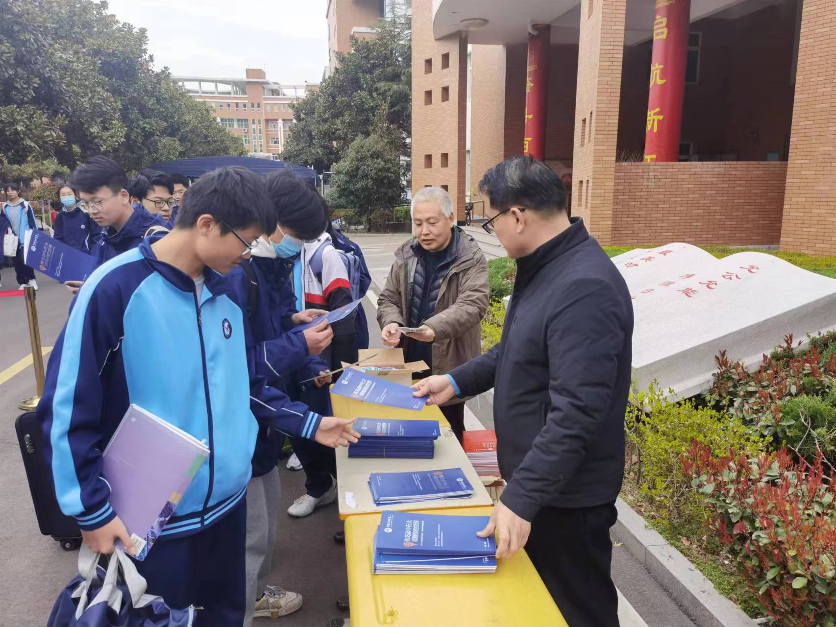 巡考老师在临沂市考点分发学校招生宣传材料 王金友摄