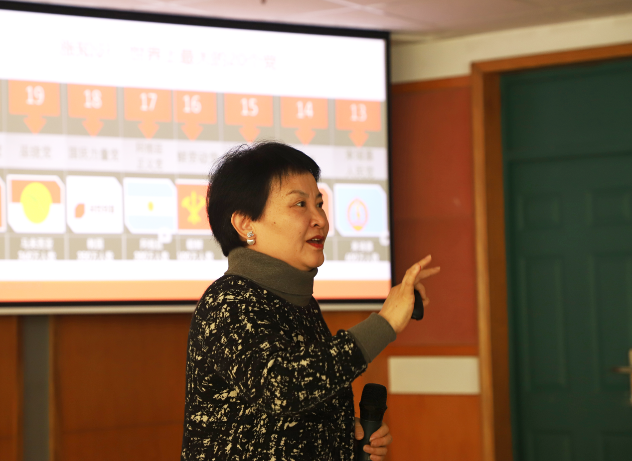 解晓燕从历史不同、政党不同、社会发展道路不同三个维度说明了近代以来中西方所走的道路差异,为同学们理清政党的基本概念、分类以及“西方式”政党的主要特征。她指出,西方国家的政党通常是议会制度下的产物,其使命通常在于争夺对于议会的控制权从而完成对于国家政权的控制,大多数资产阶级国家的党员纪律很松散、缺少约束,且党内派别林立、派系斗争合法化。但中国共产党有明确的阶级基础和指导思想,党的纪律严明,党的决议是统一的声音,这些特征使全党形成“组织的整体性”,为政治军事斗争和根据地建设提供了思想和组织上的保证。中国共产党的领导和执政从根本上改变了中国人民的前途命运,在“开天辟地”中完成救国大业、“改天换地”中完成兴国大业、“翻天覆地”中推进富国大业、在“惊天动地”中推进并将在本世纪中叶实现强国大业。