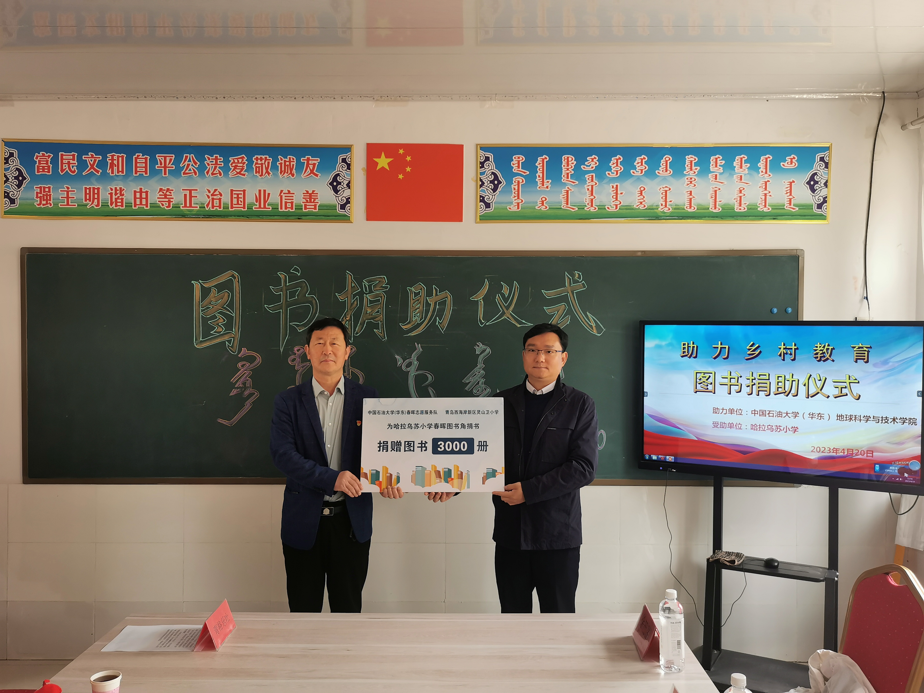 王力禾代表学院向哈拉乌苏小学捐赠图书